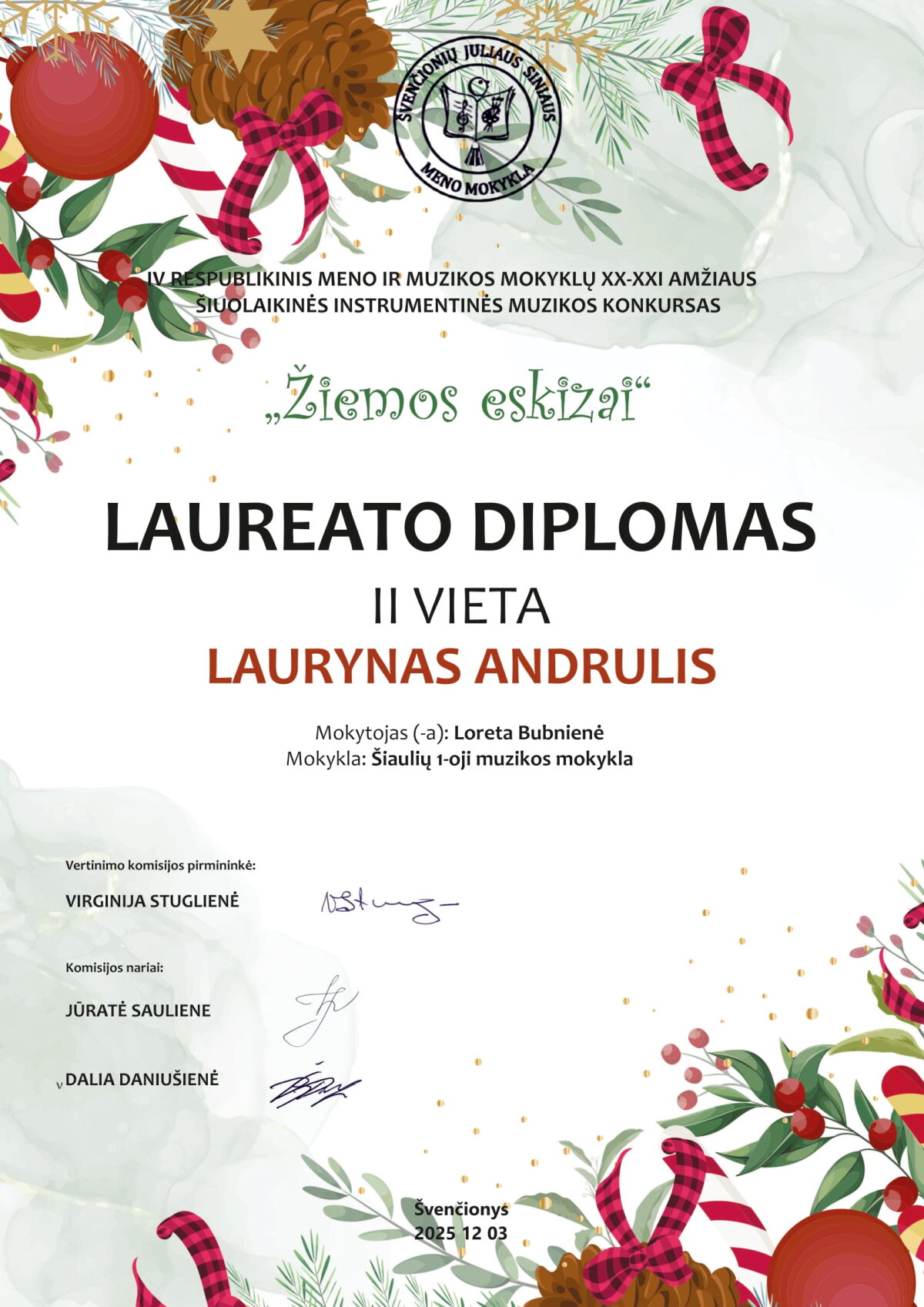 Džiaugiamės ir didžiuojamės fortepijono specialybės mokiniais Laurynu Andruliu ir Gojumi Grudžinsku, dalyvavusiais IV respublikiniame meno ir muzikos mokyklų XX–XXI a. šiuolaikinės instrumentinės muzikos konkurse „Žiemos eskizai“!