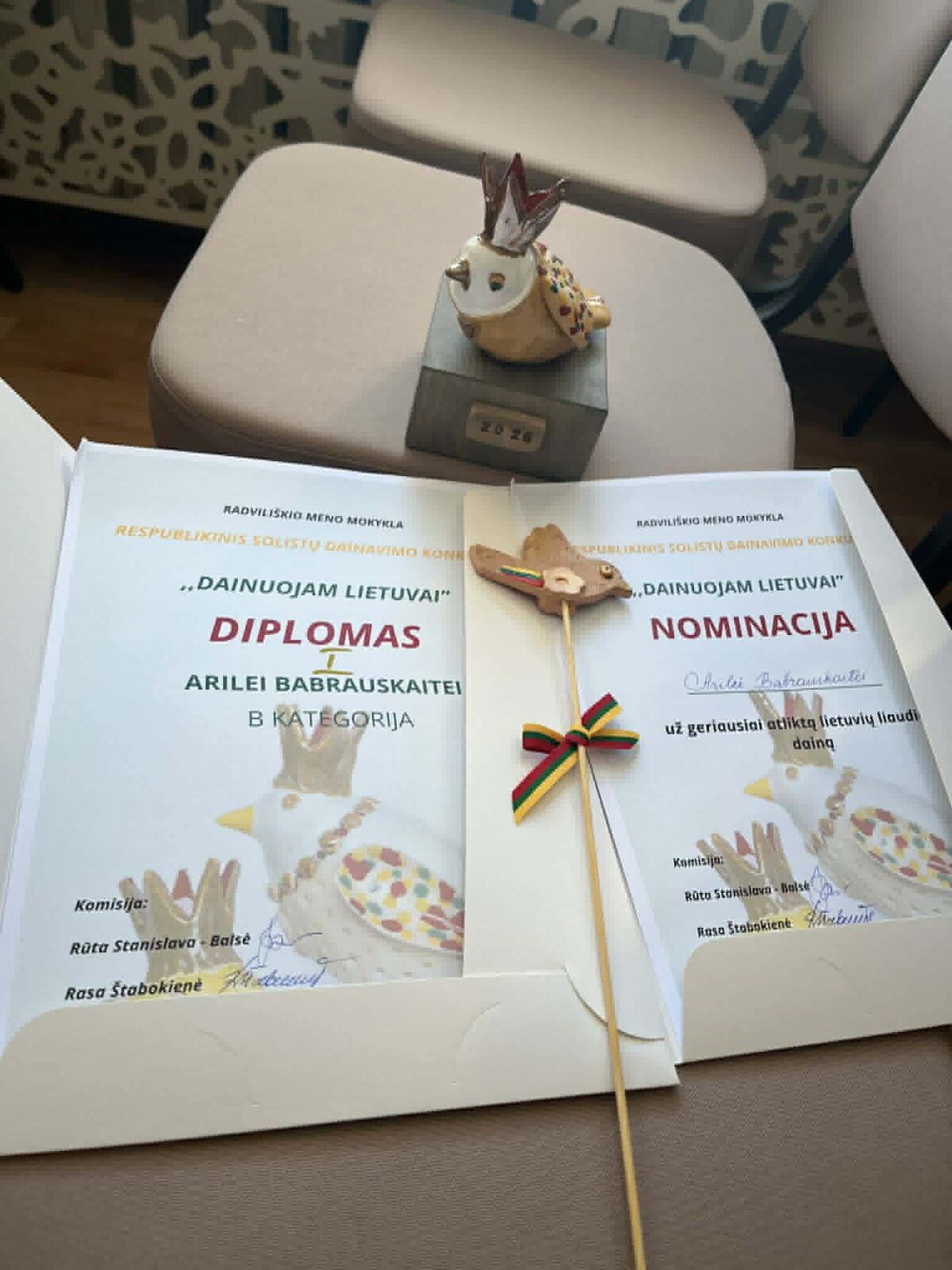 Vertinimo komisija Arilei Babrauskaitei taip pat skyrė specialią nominaciją už gražiausiai atliktą lietuvių liaudies dainą.