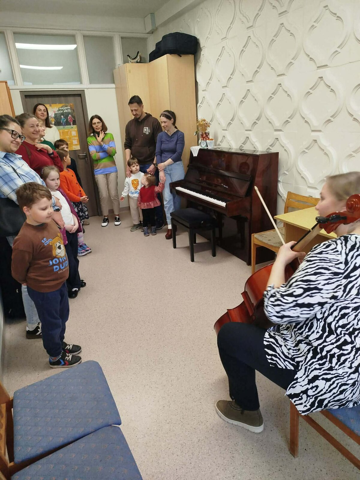 Vaikai kartu su tėveliais dalyvavo mokytojų vedamuose užsiėmimuose, patys išbandė instrumentus, išgavo pirmuosius garsus, dainavo, ritmavo ir, padedami mokytojų, bandė paverti garsus muzika!